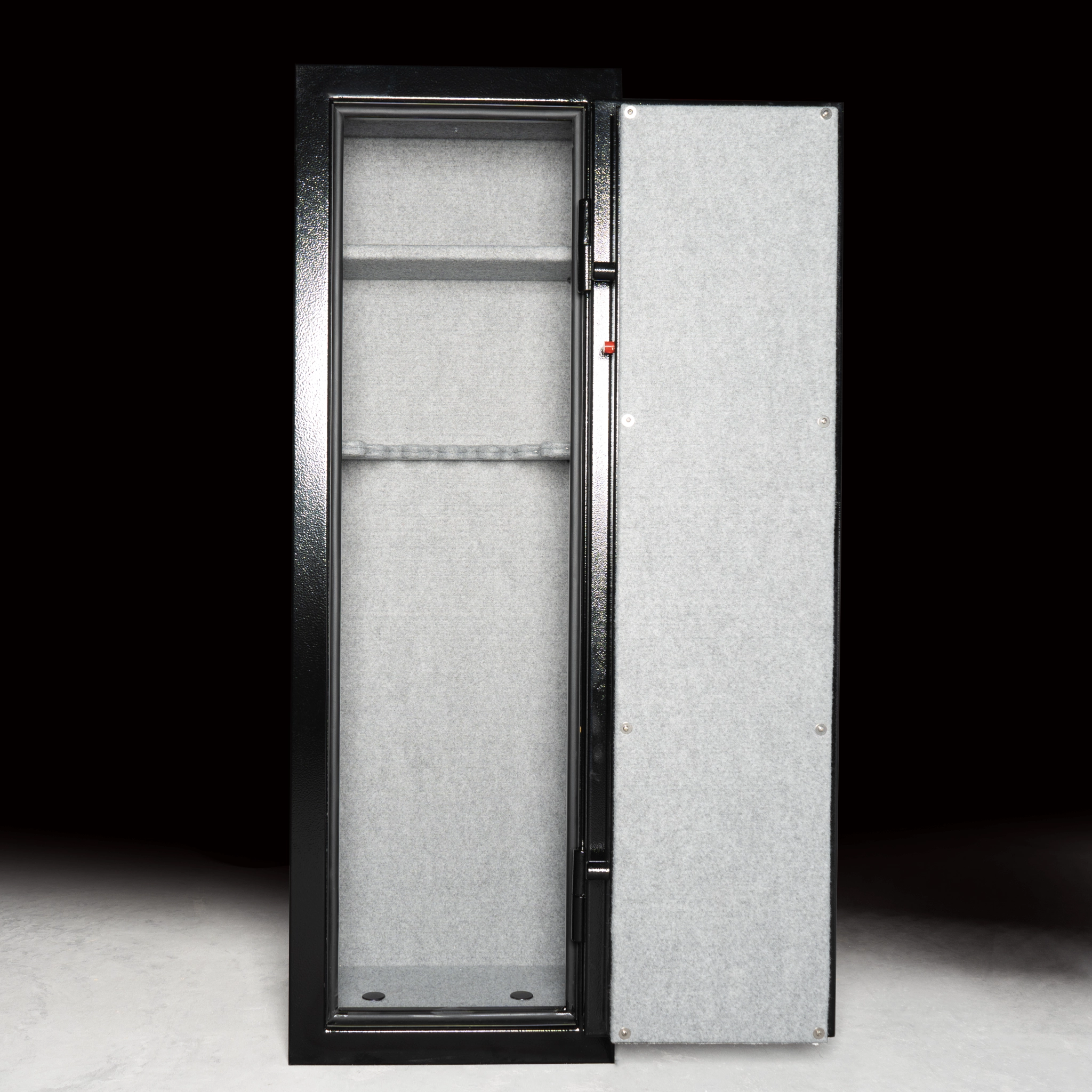 BARRICADE Gun Safes stand ready to protect your firearms, jewelry, and other precious items from disaster and theft. These safes are designed for security, durability, and modularity. BARRICADE Gun Safes are both fire and water proof and come pre-drilled for sturdy floor mounting. A digital keypad lock provides personalized access code creation along with a manual key override. Each safe comes with a carpeted interior and customizable shelving configurations, allowing you to organize your valuables however you want.