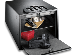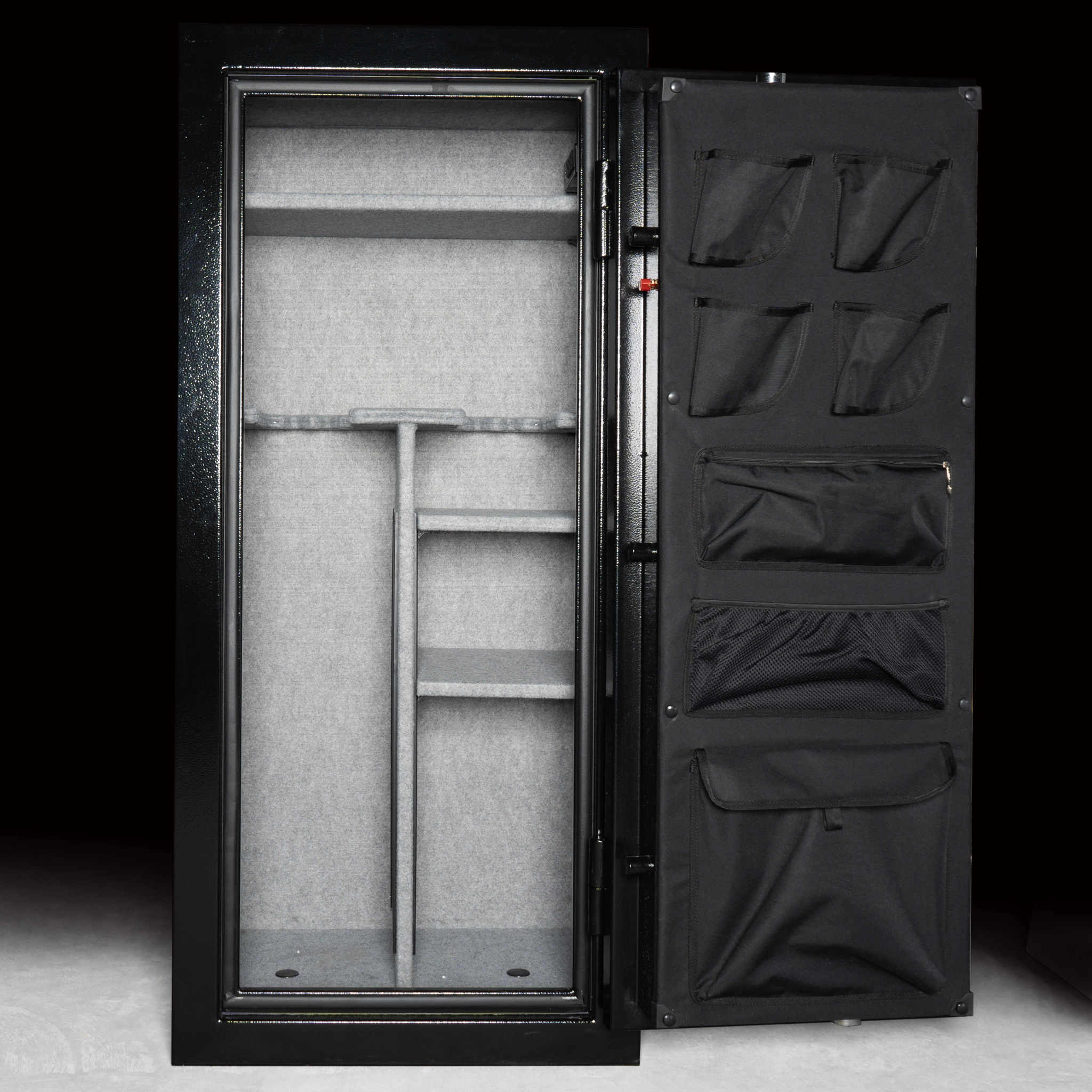 BARRICADE Gun Safes stand ready to protect your firearms, jewelry, and other precious items from disaster and theft. These safes are designed for security, durability, and modularity. BARRICADE Gun Safes are both fire and water proof and come pre-drilled for sturdy floor mounting. A digital keypad lock provides personalized access code creation along with a manual key override. Each safe comes with a carpeted interior and customizable shelving configurations, allowing you to organize your valuables however you want.