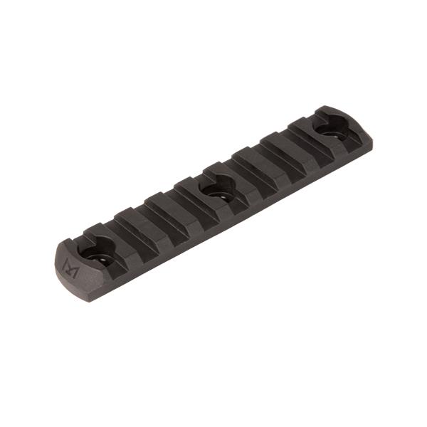 Designed for use with all M-LOK compatible Hand Guards and Forends, Magpul M-LOK Polymer Rail 9 Slots Sections provide a cost effective method of attaching various 1913 Picatinny spec rail-mounted accessories such as lights, vertical grips, etc. Injection molded from a proprietary reinforced composite for enhanced strength and durability while remaining lightweight, Rail Sections also feature beveled ends to reduce snagging and eliminate sharp corners and edges. All hardware necessary for attachment directly to M-LOK Slots on either aluminum or polymer hand guards and forends is included. 9 Slots, max overall length of 4.1 in.