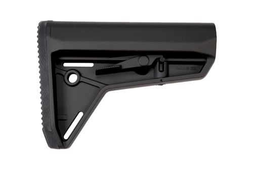 The Magpul MOE SL Carbine Stock Mil-Spec Model Black (MOE Slim Line) is a drop-in replacement buttstock for AR15/M4 carbines using mil-spec sized receiver extension tubes. Designed for the modern battlefield, the sleek profile, dual-side release latches, rolled toe, and angled rubber butt-pad are optimized for use with body armor or modular gear and provides for efficient shoulder transitions.