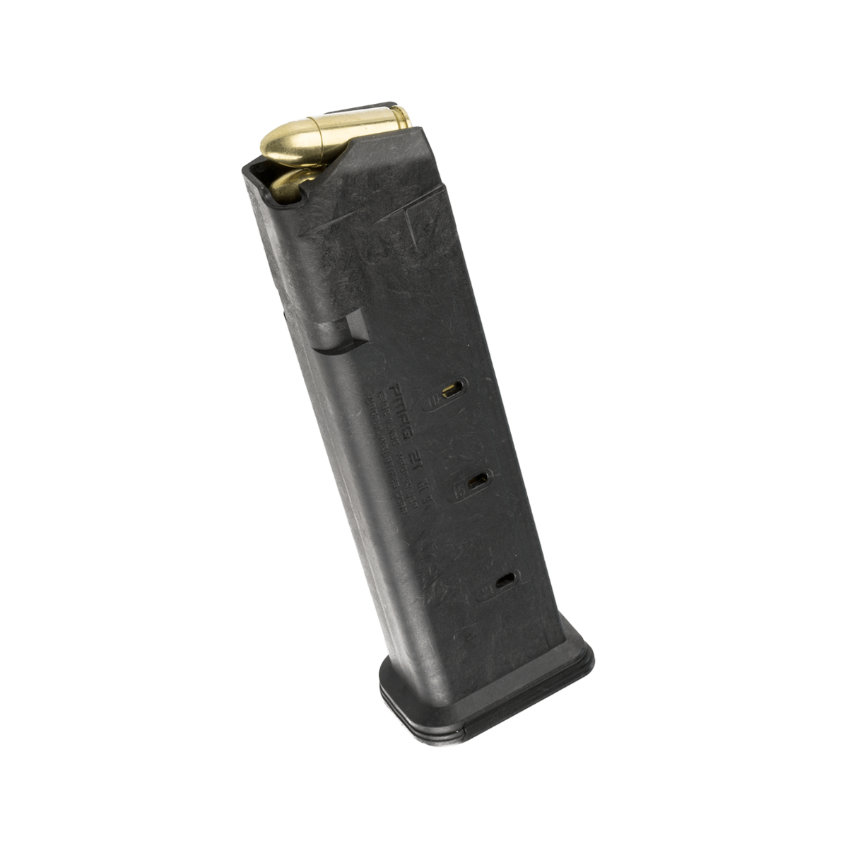 The PMAG 21 GL9 is a 21-round Glock 9mm handgun magazine featuring our proprietary all-polymer construction for flawless reliability and durability over thousands of rounds. Meeting the overall length requirements for a 140MM competition magazine, the PMAG 21 GL9 offers additional capacity without the need for expensive extensions.