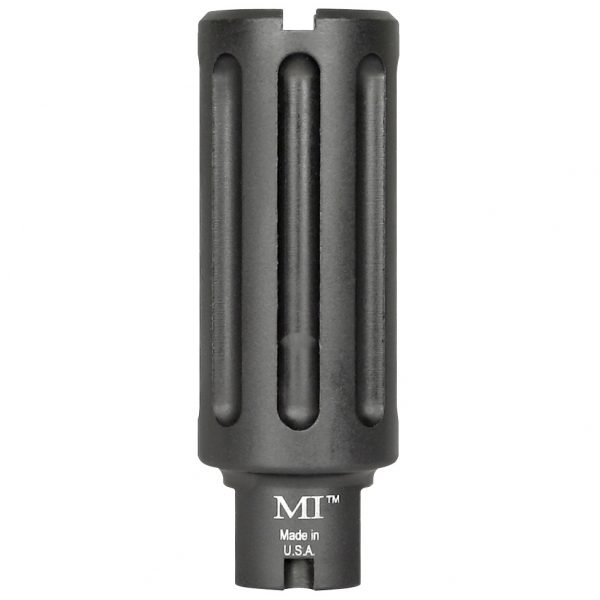 The Midwest Industries Mi Blast Can is a great way to tame the blast on a short barreled rifle or pistol. Muzzle flash and sound are directed forward, away from the shooter, for a more pleasant shooting experience.