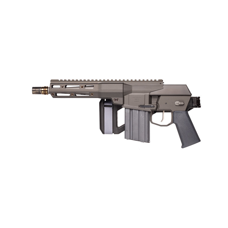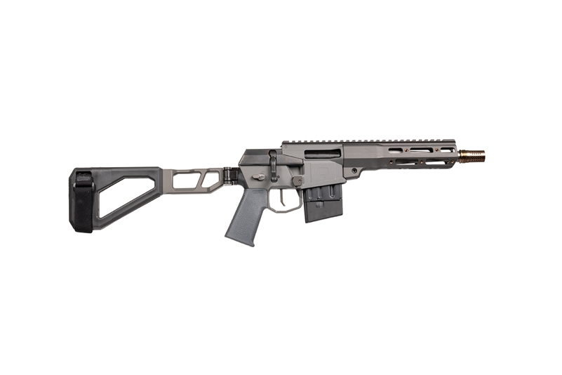 The MINI FIX pistol by Q, is the Mini Action version of THE FIX in a pistol form. The Mini Fix pistol has a smaller receiver and bolt assembly, accepts the M4 magazine and comes in the 300 BLK. This pistol utilizes a custom SB TACTICAL pistol stabilizing brace designed specifically for the Mini Fix. Invented by SB Tactical, the brace is an accessory which, when added to a large frame pistol, provides the shooter with an additional point of contact, greatly enhancing the control of the host firearm.