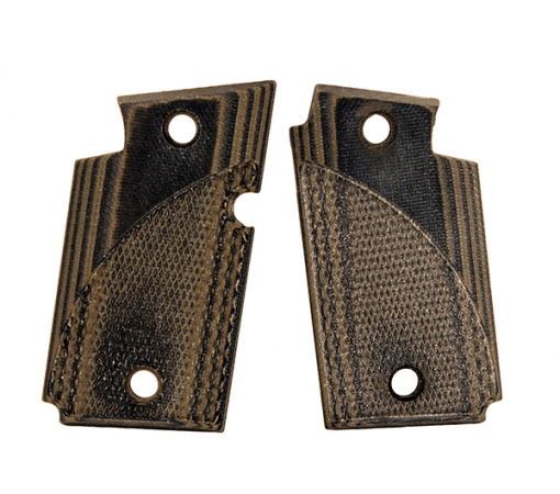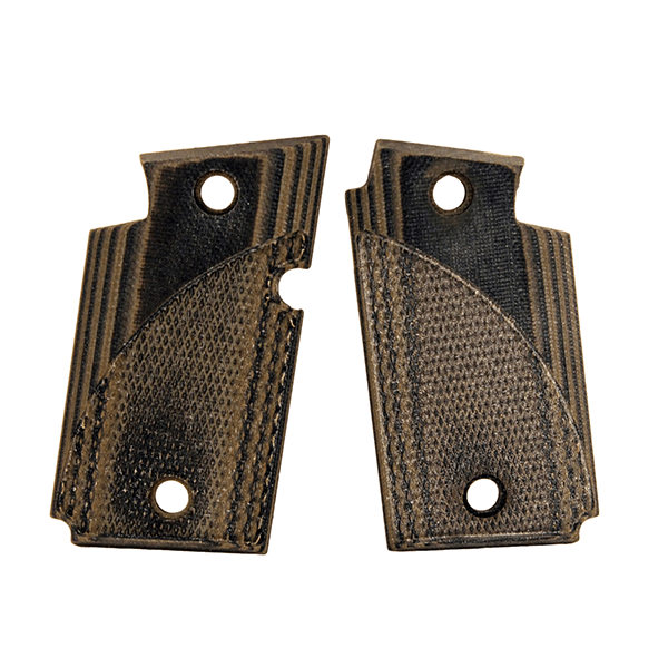 G-10 material is a fiberglass based epoxy resin laminate. It is an extremely tough and durable material that is impervious to moisture, weather or chemicals, making it a perfect material for handgun grips. The multiple layered construction allows the use of different colors to be added to the grips, creating attractive patterns as it is machined. Our Pachmayr G-10 Tactical pistol grips are available in two textures, our coarse Grappler pattern or fine checkered, and two color patterns, green/black and grey/black. Pachmayr G-10 Tactical grips are the toughest, most durable, and best looking grips on the market. Available to fit 1911’s, Sig 238’s and 938’s, Ruger Mk III and 22/45’s, Beretta 92’s, and CZ 75’s.