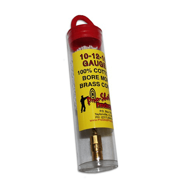 The Pro-Shot 10-12-16 Gauge Shotgun Mop is made with 100% cotton and a brass core. They are made of the highest quality construction possible. Mops can be used for quick cleaning and bore lubrication. Mops are especially excellent when using oil for bore lubrication because they create foaming action that helps in the lubrication process.