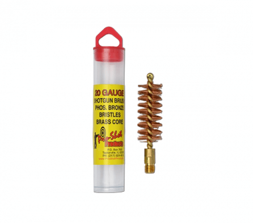 Pro-Shot 20 Gauge Shotgun Brush – Oversized for Durability and Added Cleaning POWER! Construction consists of a Brass Core with Bronze Bristles and a looped end. This Bench rest high quality type of construction makes it the finest brush available for shotguns.