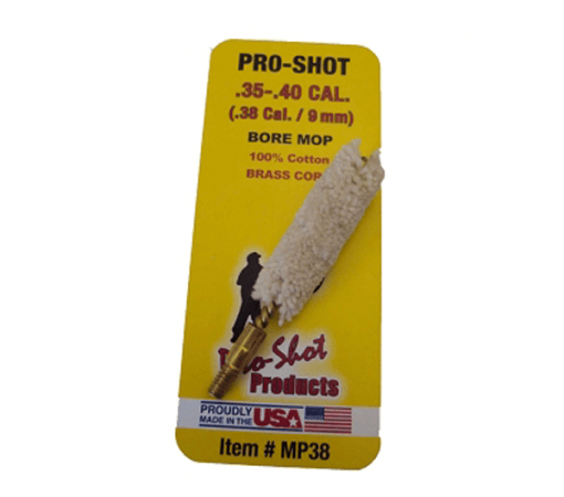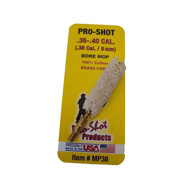 The Pro-Shot Bore .35-.40 Cal. Mop is 100% cotton with a brass core. They are made of the highest quality construction possible. Mops can be used for quick cleaning and bore lubrication. Mops are especially excellent when using oil for bore lubrication because they create foaming action that helps in the lubrication process.