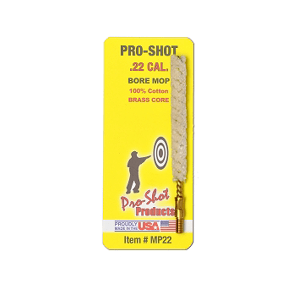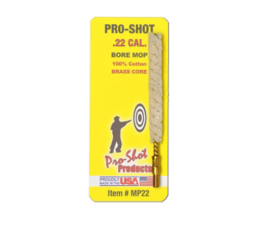 The Pro-Shot Bore Mop .22 Cal. is 100% cotton with a brass core. They are made of the highest quality construction possible. Mops can be used for quick cleaning and bore lubrication. Mops are especially excellent when using oil for bore lubrication because they create foaming action that helps in the lubrication process.