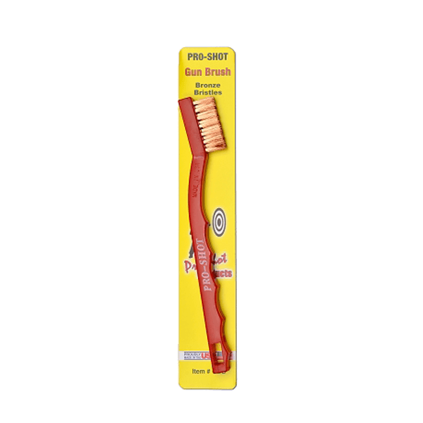 The Pro-Shot Bronze Gun Brush gives you cleaning power for powder residues and burn marks and makes cleaning the face of a revolver cylinder easy. The Pro-Shot Bronze Gun Brush also features a grooved handle for a positive grip. All Pro Shot products made in USA from USA components.