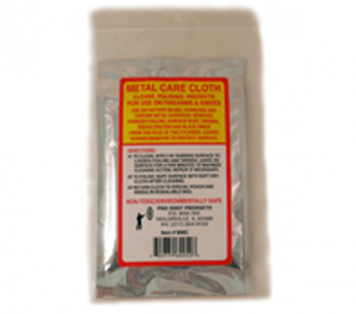 Pro-Shot Metal Care Cloth (Makes polish obsolete) cleans all metal exterior on firearms including blued and stainless surfaces. Removes surface rust and tarnish. This Non-Toxic cloth also works great on cleaning and protecting knives. Cloth Size 9.8” x 9.8” – 96 Sq. inches