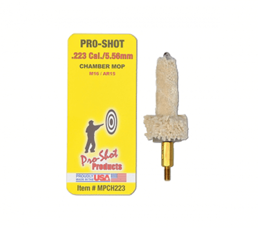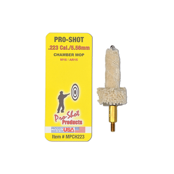 The Pro-Shot Military Style Chamber Mop .223 is 100% cotton and manufactured with a brass core and looped end. They are manufactured of the highest quality construction possible. Mops are especially excellent when using oil for bore lubrication because they create foaming action that helps in the lubrication process. Mops can be used for quick cleaning and bore lubrication.
