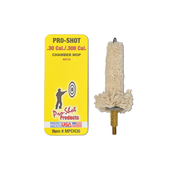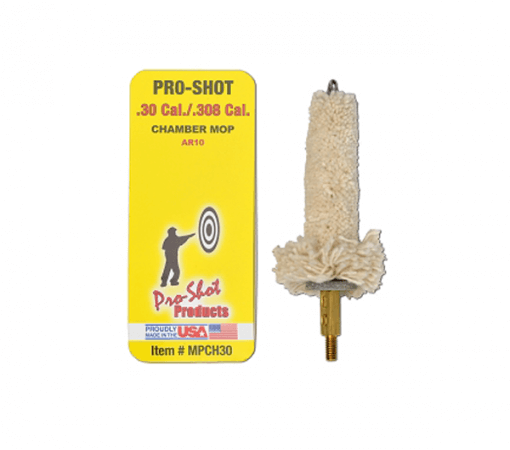 The Pro-Shot Military Style Cotton Chamber Mop .308 is 100% cotton and manufactured with a brass core and looped end. They are manufactured of the highest quality construction possible. Mops are especially excellent when using oil for bore lubrication because they create foaming action that helps in the lubrication process. Mops can be used for quick cleaning and bore lubrication.