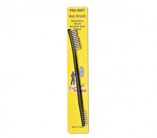 The Pro-Shot Steel Double End Gun Brush gives you cleaning power for powder residues and burn marks and makes cleaning the face of a revolver cylinder easy. The Pro-Shot Steel Double End Gun Brush also features a grooved handle for a positive grip. All Pro Shot products made in USA from USA components.