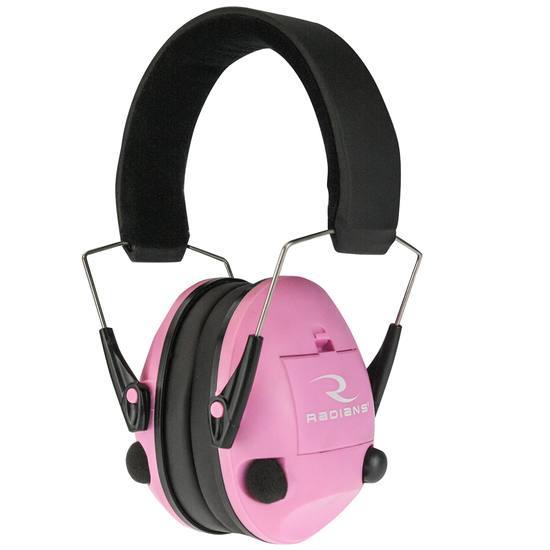 The Radians Transverse Electronic Earmuff Pink is an electronic sound amplification earmuff with 2 independent high frequency directional microphones. Automatically compresses harmful noises to a safer range. Adjustable moisture wicking headband moves moisture away while providing cool comfort.