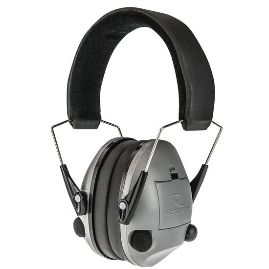 The Radians Transverse Electronic Earmuff Silver is an electronic sound amplification earmuff with 2 independent high frequency directional microphones. Automatically compresses harmful noises to a safer range. Adjustable moisture wicking headband moves moisture away while providing cool comfort.