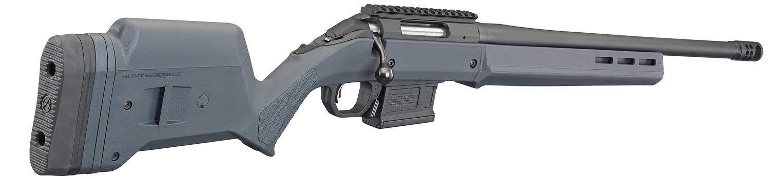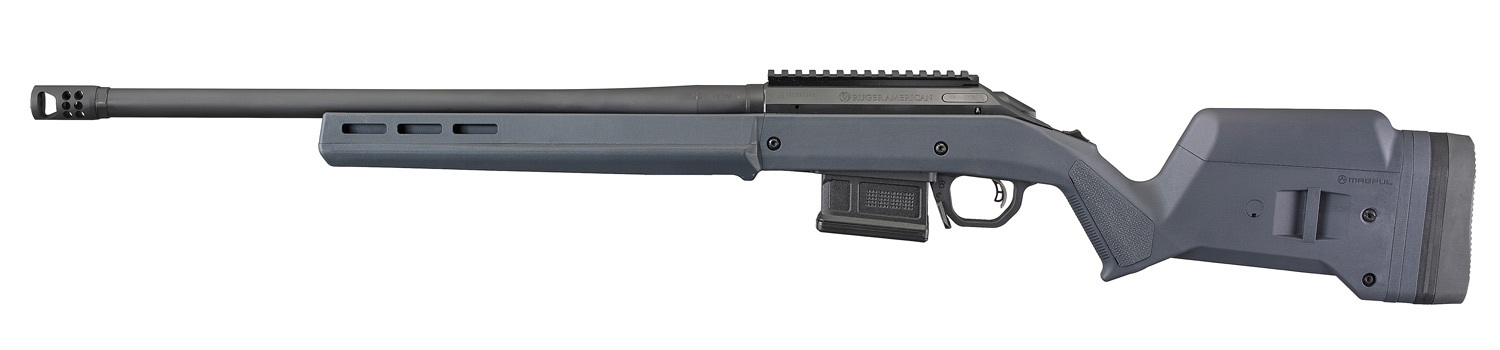 Prey beware, there is a new hunter in the field. The Ruger American Hunter in 6.5 Creedmoor is a modern development in the pastime as old as man. Taking designs off of competition and sniper rifles, Ruger has developed the next step in hunting evolution. Featuring a Magpul Hunter American short action, the length of pull and comb height can be adjusted to perfectly fit nearly every hunter. A Ruger Marksman Trigger provides a crisp release with a 3-5 lb. adjustable pull weight. The Heart of the American Hunter rifle is the barrel, and Ruger has spared no expense; a heavy-contour (.850″ at the muzzle) barrel features a Ruger Precision Rifle Hybrid Muzzle Brake to effectively reduce recoil while minimizing noise and blast to the sides of the shooter and produce minute of angle accuracy that can make every hunt a success.