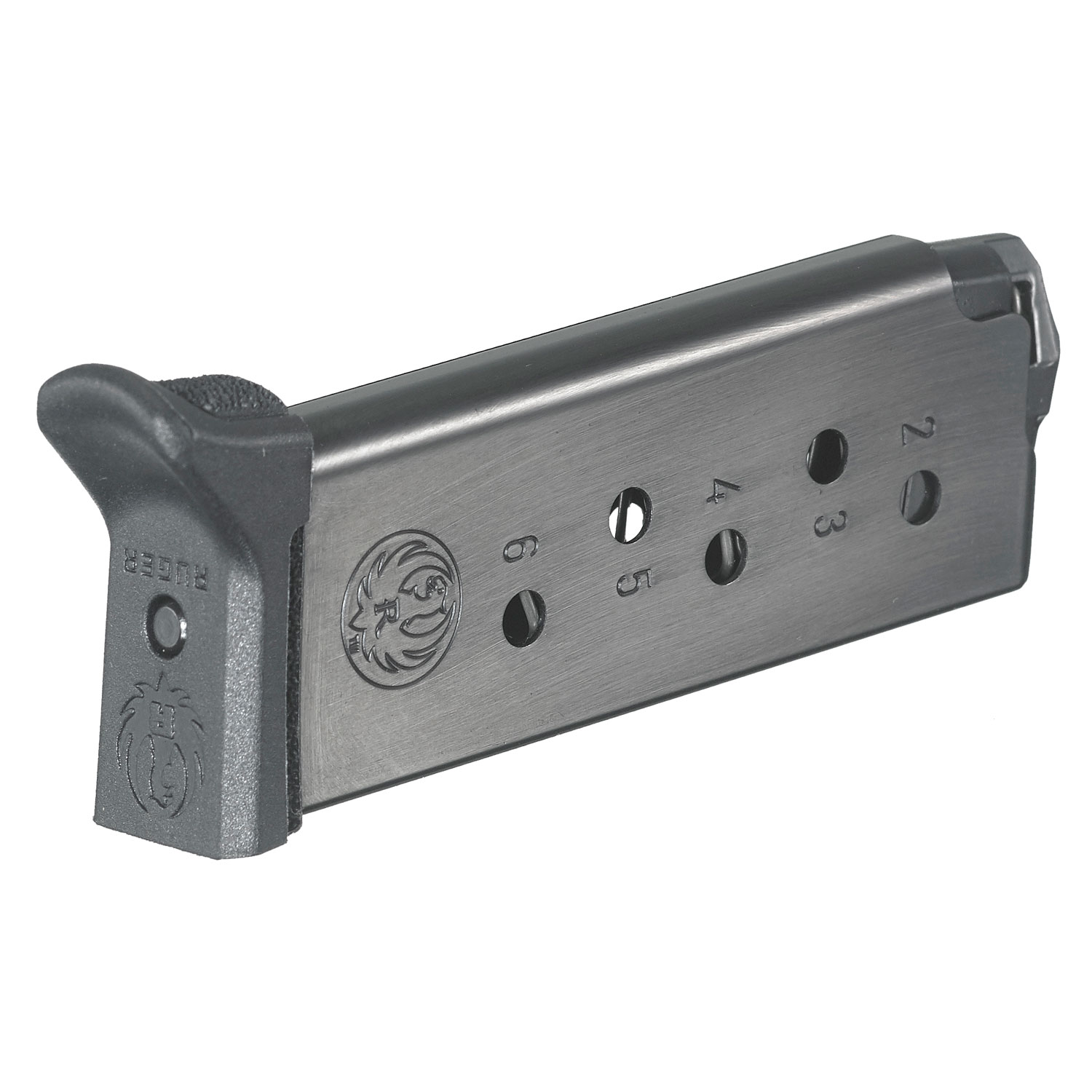 This blued steel, 6-round, .380 Auto Genuine Ruger Factory Magazine is compatible with the LCP II and LCP pistols. This Magazine comes with an extended floorplate installed and also includes a flush-fit floorplate.