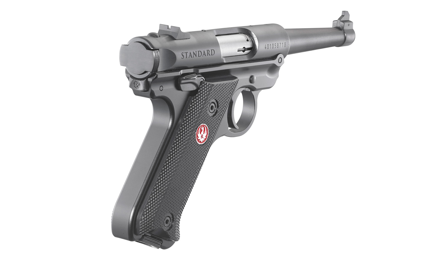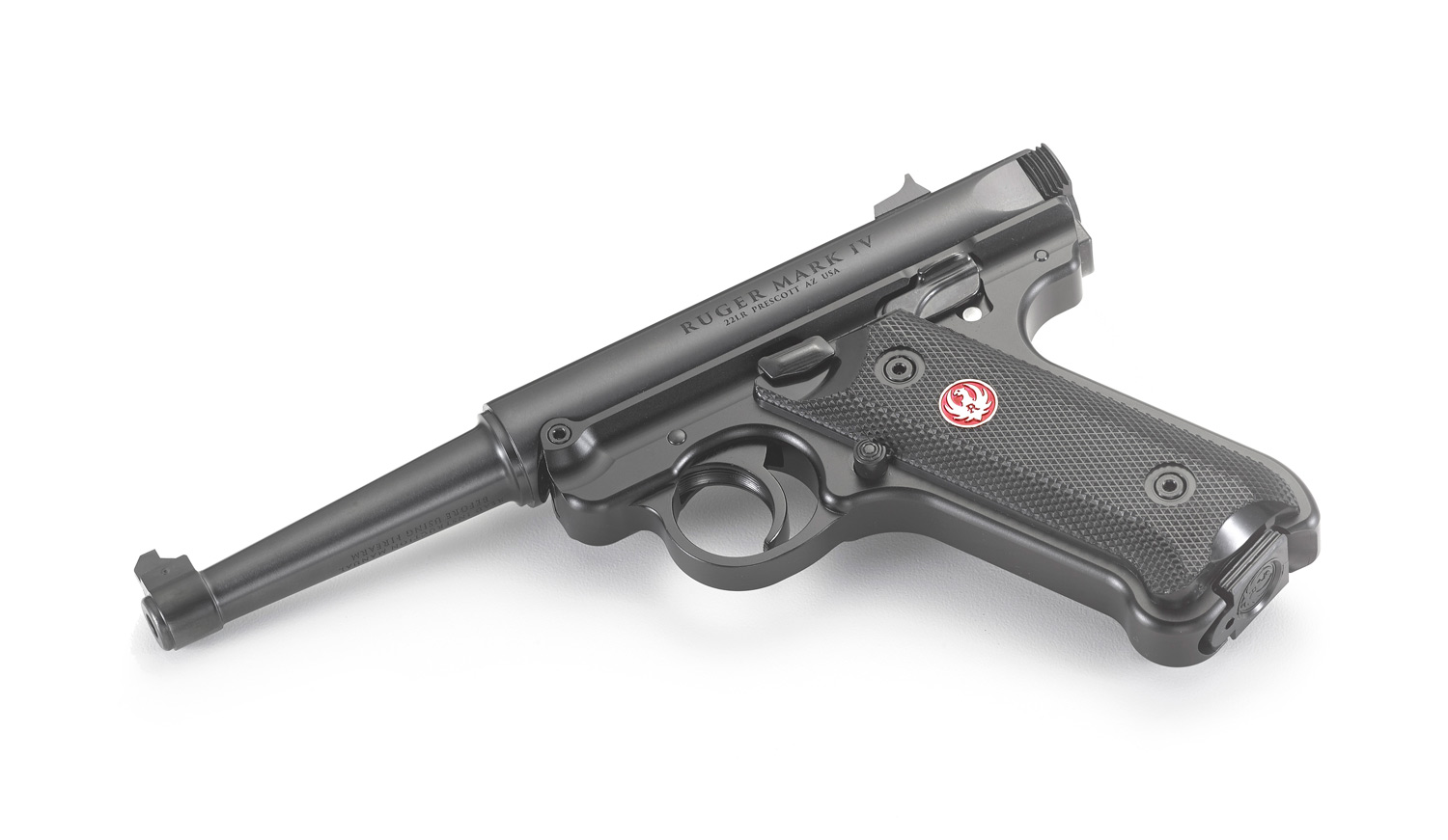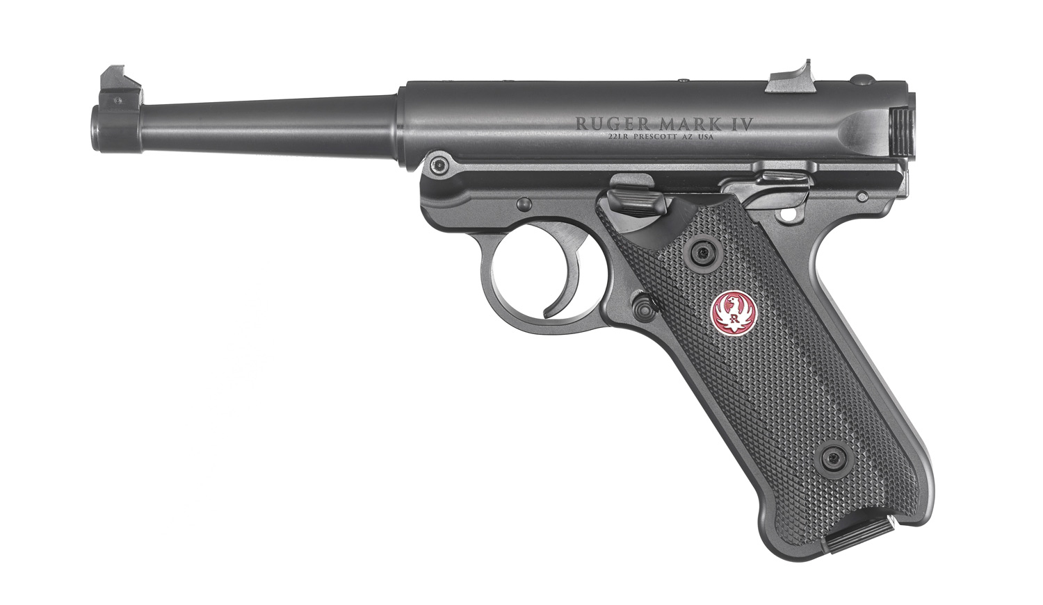The Ruger Mark IV Standard .22LR Blued Pistol was designed to fix a problem that has been frustrating shooters for decades. With it’s updated design the Mark IV now features a one-piece CNC machined grip frame that has a simple one-button takedown for quick and easy field-stripping and proper chamber to muzzle cleaning. The recessed button in the back of the frame allows the upper receiver to tilt up and off of the grip frame without the use of any tools. The Mark IV has an internal cylindrical bolt construction that ensures permanent sight to barrel alignment and higher accuracy potential than conventional moving-slide designs. Contoured ejection port and easy to grasp bolt ears allow for durable and reliable operation round after round. This gun also has an accurate sighting system that features an adjustable rear sight drilled and tapped receiver for weaver or Picatinny style rails.