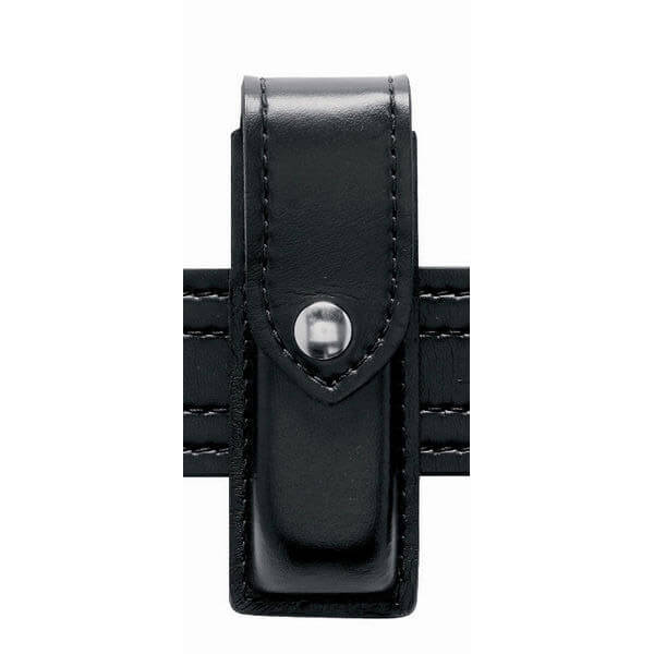 The Safariland Magazine Pouch Model 76 is a standard single magazine pouch that is designed to carry one magazine on a 2.25 in. (58 mm) duty belt. The 76 rides in a vertical position on the belt and carries the magazine in a butt-up position for easy access. It’s constructed of rugged SafariLaminate™ and is available in several scuff-resistant finishes with four different closures.