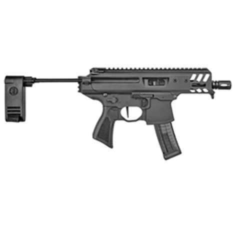 The Sig Sauer MPX Copperhead Black 9mm 4.5″ 20RD features a monolithic Elite Series Cerakote finish upper receiver, with an integrated stock knuckle lower, and a 4.5” barrel with integrated muzzle brake. The MPX Copperhead comes equipped with the new SIG SAUER Pivoting Contour Brace (PCB) giving pistol users a brace that easily adapts to the movement of the shooter’s arm with a patented swivel operation for perfect placement, and can be rapidly deployed. The SIG MPX redefines the submachine gun category with a new level of operator safety, in-field adaptability and proven reliability in the harshest environments. Completely ambidextrous, the SIG MPX is great for left- or right-handed shooters with its dual-sided selector switch, magazine release, charging handle and bolt release. The SIG MPX operates from a fully-closed and locked rotating bolt, offering enhanced reliability and safety in use. A short-stroke gas piston allows the SIG MPX to run all weights and brands of 9mm ammunition with no adjustments to the gas valve.