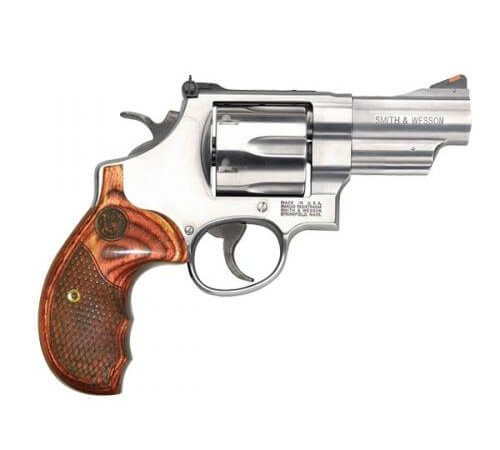 The Smith & Wesson Model 629 Deluxe 3″, 6 Round Revolver, .44 Magnum is perfect for competition shooting, home protection, hunting, or even recreational shooting. Chambered in .44 Magnum (also accepts .44 S&W Special), S&W 629 Deluxe features adjustable rear sights and a red ramp front sight. The Smith and Wesson 629 Deluxe is built with a 3″ barrel, satin stainless finish, and checkered wood grips. All Smith & Wesson firearms are backed by their S&W Lifetime Service Policy.