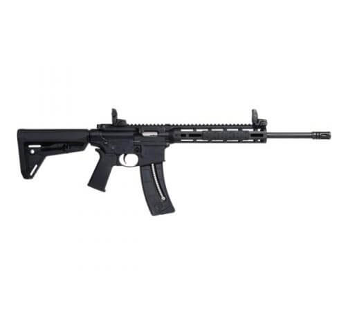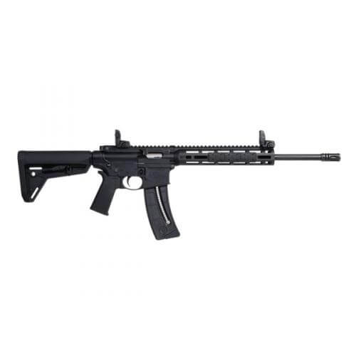 The Smith & Wesson M&P 15-22 Sport Moe SL Matte Black, 25 Round Semi Auto Rifle, .22 LR is the best rifle for recreational shooting. Chambered in .22 LR, the S&W M&P 15-22 Sport MOE  features a 10″ M&P Slim Handguard with MAGPUL M-LOK, MAGPUL MBUS folding sights, MAGPUL MOE SL Stock (MOE Slim Line), and MAGPUL MOE SL Grip. This model, Smith and Wesson M&P 15-22 MOE SL, is built with a 6-Position CAR Stock, functioning charging handle, shell deflector, armornite barrel finish, and a 2-position, receiver mounted safety lever. Smith & Wesson M&P 15-22 Sport Moe SL Matte Black, 25 Round Semi Auto Rifle, .22 LR is compatible with most standard AR15 components and accessories; this model is also easy to mount M-LOK accessories. 2″ M-LOK rail panel and MAGPUL M-LOK Type 2 rail covers included — includes 6 panels, each panel covers one M-LOK slot. All Smith & Wesson firearms are backed by their S&W Lifetime Service Policy.
