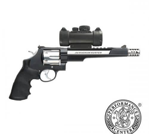 The Smith & Wesson Performance Center Model 629 .44 Magnum Hunter, 6 Round Revolver, .44 Magnum is a favorite choice among revolver enthusiasts. Chambered in .44 Magnum (also accepts .44 S&W Special), the S&W 629 .44 Magnum Hunter features a chrome hammer, chrome trigger w/ trigger stop, muzzle brake, and a PC tuned action. The Smith & Wesson Performance Center Model 629 .44 Magnum Hunter, 6 Round Revolver, .44 Magnum includes a red dot/green dot optical sight. All Smith & Wesson firearms are backed by their S&W Lifetime Service Policy.