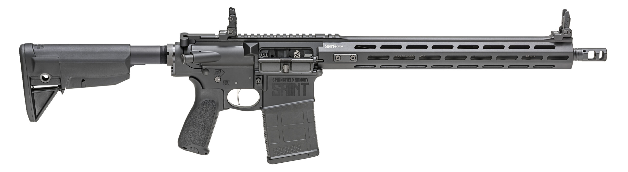 At just 7.8 lbs, the all new Springfield Saint Victor .308 hits like a ton of bricks without the weight of a traditional AR-10. Purpose built to offer serious power in a quick handling configuration, the Saint Victor in .308 features a 16″ light weight barrel, M-Lok free float hand guard and included flip-up sights. Never a victim, always the Victor. The Saint Victor series of rifles and pistols from Springfield Armory are designed as purpose built defensive firearms, and manufactured to professional standards for unrivaled performance.