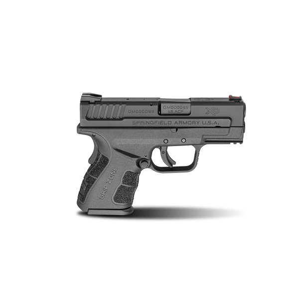 The slim and ergonomic single stack sub-compact sized Springfield XD Mod.2 Sub-Compact Model Black 3.3″, 9 Round Semi Auto Handgun, .45 ACP takes shooting to the next level. This model, Springfield Mod 2 XD Sub-Compact Model is chambered in .45 ACP and holds 9 rounds. Springfield Armory XD Mod 2 features the GripZone, fiber optic front sight, low profile extended rear sight, posi-wedge serrations, slimmer slide, and a high-hand beavertail. The Springfield Armory Mod 2 XD Sub-Compact Model is also built with a high-hand grip relief, slim contoured frame, and a slim contoured disassembly lever. XD Mod 2 is loaded with safety features, like a striker status indicator, loaded chamber indicator, grip safety, internal firing pin block, and the USA (Ultra Safety Assurance Action Trigger System) SPRINGFIELD ARMORY® LIMITED WARRANTY