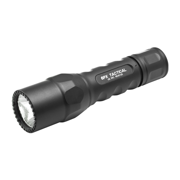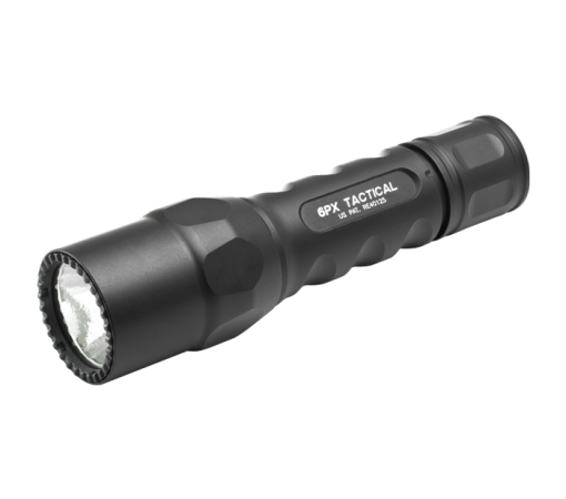 The SureFire 6PX Tactical Flashlight is just that—a flashlight designed specifically for tactical use. Providing simplicity of operation and tremendous illuminating power in a small package, it uses a high-efficiency LED—virtually immune to failure since there’s no filament to burn out or break—to generate a brilliant, penetrating, perfectly pre-focused 320-lumen beam. The 6PX is activated by our classic tactical tailcap switch—press for momentary-on, twist for constant-on. The high-strength aerospace aluminum body is smoothly sculpted for a secure grip and is hard anodized to military specifications for extreme resistance to scratches, abrasion, and corrosion. A polycarbonate micro-textured reflector delivers a comparatively wider beam with generous peripheral light. We also make a polymer-body version of this light, the G2X Tactical, and a dual-output version with a two-stage click-type tailcap switch, the 6PX Pro.
