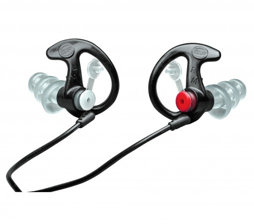 SureFire EP4 Sonic Defenders Plus protect your hearing without interfering with your ability to hear routine sounds or conversations. Their triple-flanged stem design fits larger ear canals and provides a Noise Reduction Rating (NRR) of 24dB. Sounds, at safe levels, are allowed to pass through into the ear canal, while potentially harmful noises (above 85dB) are reduced via a proprietary design that incorporates a special noise-reducing filter. EP4s include attached filter caps, which can be inserted for additional protection and blocking out lower-level noise, like that heard on a plane, where hearing ambient sounds or conversations isn’t critical. Right/left color-coded Sonic Defenders Plus are made from a soft but durable, hypoallergenic polymer that provides all-day comfort and an extended product life (up to 6+ months, depending on usage and care). Their patented EarLock® retention rings lock the earplugs in place, while soft, adjustable triple-flanged stems provide secure seals in the ear canals. A low-profile design means EP4s can be worn while wearing a helmet or mask, or while using a phone or headset. Available in clear, black, or orange. Comfortable EP4 Sonic Defenders Plus also serve as earpieces for compatible radio communication systems* simply by removing the noise-reducing filter and attaching the earpiece to the system. NOTE: EP4 earpiece no longer provides hearing protection once the noise-reducing filter has been removed.
