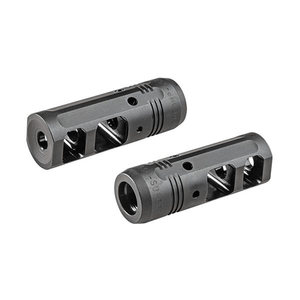 The advanced SureFire ProComp 556 muzzle brake, which fits M4/M16 weapons and variants with 1/2″-28 muzzle threads, greatly reduces both recoil impulse and muzzle rise so that the weapon tracks straight back to keep you on target for faster shot-to-shot recovery. Its patented Impulse Diffusion design minimizes side blast and rear-directed concussion effects. The ProComp 556 duplicates the design of the SureFire SOCOM SFMB-556-1/2-28 muzzle brake, but unlike the latter it cannot be used to mount SureFire SOCOM suppressors.