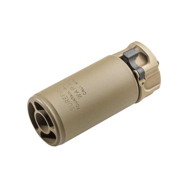 The SureFire Warden Blast Diffuser Tan directs the concussive blast of the muzzle forward of the weapon system and the shooter instead of venting to the side as seen with stand-alone muzzle brake devices. This aids in reducing the overpressure and flash felt by others to the immediate left and right of the shooter’s firing position. The Warden securely attaches to any SureFire SOCOM 5.56 or 7.62 muzzle device through the same patented SureFire Fast-Attach® system found on the SureFire SOCOM suppressor series. Additionally the Warden aids in minimizing dust signature when firing from a prone position that would traditionally be seen when firing with a standard flash hider or muzzle brake.