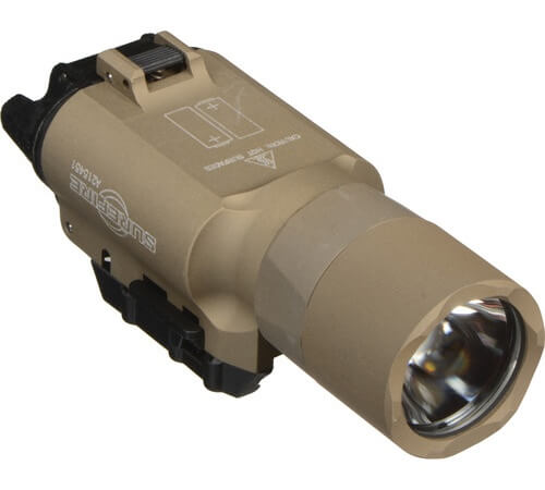 SureFire X300 Ultra LED Weaponlight desert tan is a single 500-lumen output LED light with the quick attach/detach Rail-Lock clamping mount that fits any Picatinny/Weaver rail and makes this weaponlight compatible with almost any pistol, rifle, or shotgun. For non-railed handguns, SureFire offers a wide range of optional adapters that enable integration with the X300. The factory-focused Total Internal Reflection (TIR) lens concentrates the beam for optimal brightness while maximizing throw distance. A push/toggle switch is accessible from both sides and allows one-touch operation of momentary activation and constant-on modes. The lightweight aluminum housing is anodized to make it corrosion and abrasion-resistant, and gasket sealed for weatherproof performance. The X300 provides up to 90 minutes of constant brightness on two CR123 batteries.