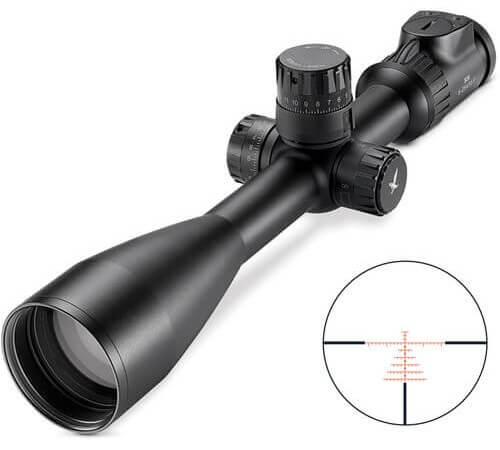 Swarovski Optik designed the Swarovski X5i 79121 with an incredibly wide magnification range and large over-sized objective to provide shooters a platform to confidently and accurately shoot from the first pre-dawn glow to the day’s last ray of sunlight. The X5 employs an array of technologies that can put you on-target at distance, while maintaining the ability to precisely place shorter shots. Its performance begins with Swarovski’s iconic proprietary SWAROTOP and SWARODUR anti-reflection coatings. The entire optical path is fully multicoated to maximize light transmission for bright, high-contrast images, especially in low-light conditions. They use multi-rotational turrets with 1/4 MOA impact point correction to precisely put you on-target faster. The windage turret features a 50 MOA adjustment range; while the elevation boasts a broad 82 MOA range for accurate long-range BDC. Its SUBZERO function allows you to go up to 10 MOA below a pre-set Zero to make closer shots that long-range scopes are unable to accomplish accurately.