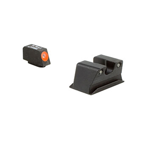 Trijicon Hd Night Sight Set Walther Pps/ppx – Orange Front – The TRIJICON HD NIGHT SIGHT SET WALTHER PPS/PPX were specifically created to address the needs of tactical shooters. The three dot green tritium night sight set’s front sight features a taller blade. It also has an aiming point ringed in photoluminescent paint. The rear sight is outlined in black and features a wider U-shaped notch. This unique configuration increases visibility and quickens front sight acquisition—even in transitional lighting. Additionally, the front surface of the rear sight is steeply hooked to assist in emergency one-handed slide operation.