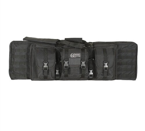 Voodoo Tactical Enhanced 36″ Molle Soft Rifle Carrying Case, Padded, Black – Whether you are carrying your carbines to the range or need to pack them in the field, this Voodoo Tactical brand padded weapons case is a terrific way to carry one or two long guns and a great deal of related gear. This gun case features three carrying methods: A standard handle in center of the bag, a shoulder strap, and back-pack style shoulder harness. This backpack style carry is great for long distances. And if you use the PAL webbing to attach MOLLE or ALICE pouches, you can haul even more gear.
