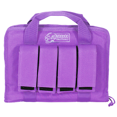 Voodoo Tactical Pistol Case With Mag Pouches 25-0017 Pur – The Voodoo Tactical Pistol Case With Mag Pouches 25-0017 is perfect for carrying your hand guns to the range. This case has full interior padding and will accommodate two hand guns. There are four outside mag pouches that will adjust to hold oversize magazines.