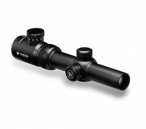 The Vortex Crossfire II 1-4×24 Rifle Scope is an excellent optic, with long eye relief, a fast-focus eyepiece, fully multi-coated lenses and resettable