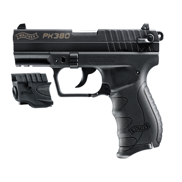 The Walther PK380 Black With Laser, 8 Round Semi Auto Handgun, .380 ACP is everything you’re looking for in a compact pistol. Chambered in .380 ACP with a magazine capacity of 8 rounds, this sleek lightweight handgun is both concealable and powerful. The Walther PK 380 Black includes an adjustable laser, has low profile sights, a loaded chamber indicator, slide serrations, and a paddle-style magazine release on the trigger guard making it easy to quickly operate in small hands. Additional features of the Walther PK380 include a black finish, polymer frame, and a single (4lb.) or double (11 lb.) action trigger. The PK380 Black w/ Laser has NO thumb safety. Be sure to check out the WALTHER ARMS LEGENDARY LIMITED LIFETIME WARRANTY