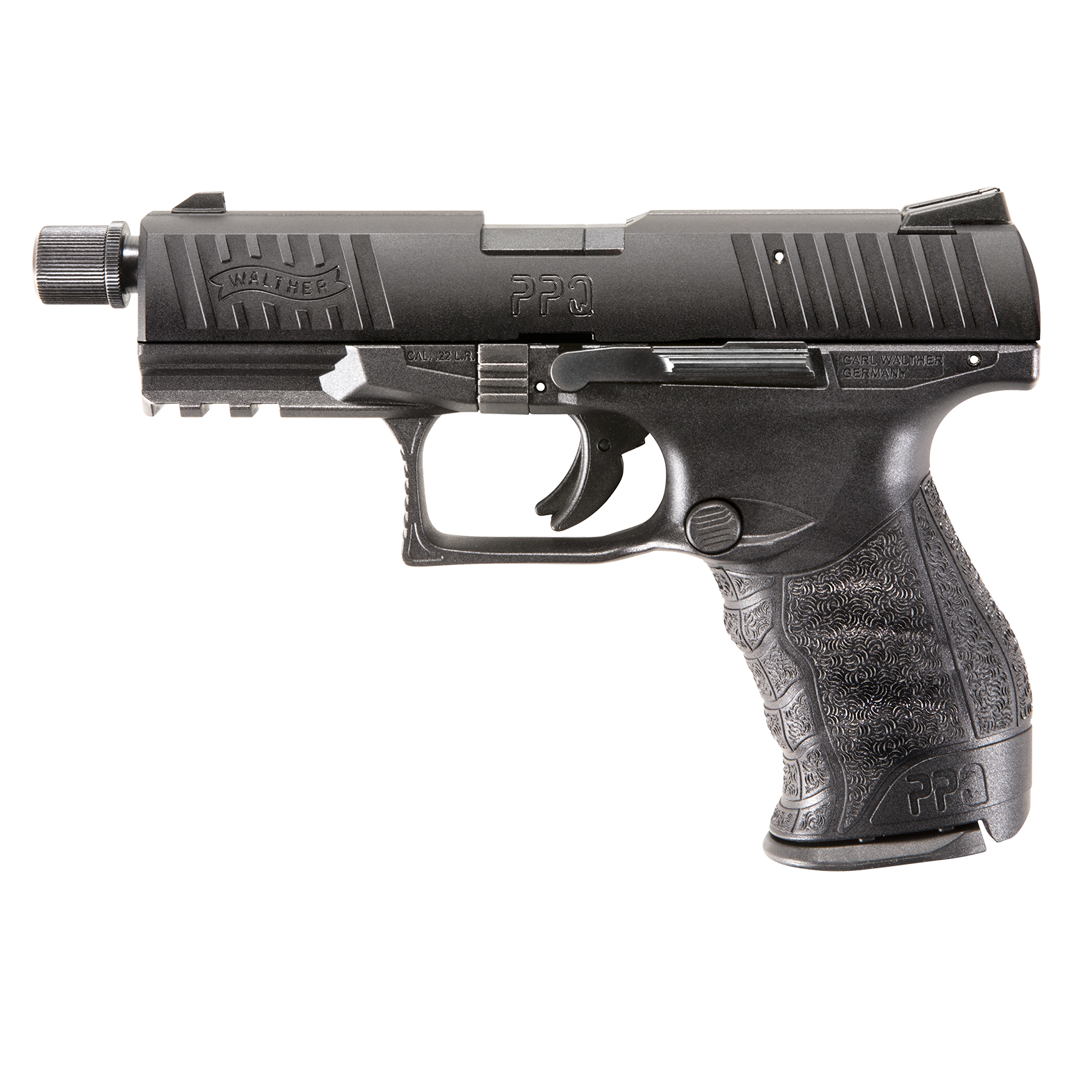 Designed for right and left-handed shooters, the PPQ 22 features an ambidextrous slide stop and reversible button-style magazine release. Premium features such as adjustable elevation sights and being suppressor-ready out-of-the-box with a 1/2×28 threaded barrel adapter make this pistol a leader in its class. This pistol is Walther ingenuity in action.