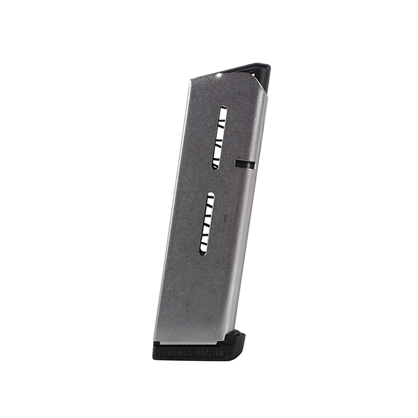 More magazines means more shooting! The Wilson Combat 1911, 7 Round Magazine, .45 ACP, Standard Base Pad is a replacement magazine manufactured by Wilson Combat – guaranteeing a perfect fit and reliability. This Wilson 1911 magazine is built for Wilson Combat’s 1911 Commander and Wilson Combat’s 1911 Government pistol, chambered in .45 ACP. With the capacity of 7 rounds, this Wilson Combat 1911 Commander, Government magazine is manufactured with a standard base pad, stainless steel material, and stainless finish. LEARN MORE ABOUT WILSON COMBAT