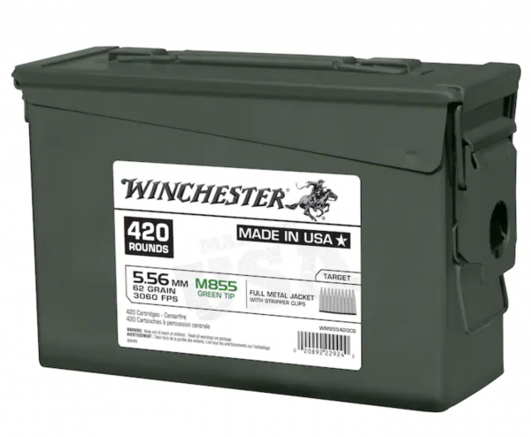 Winchester 5.56 M855 FMJ 420 Rounds in Ammo Can WM855420CS