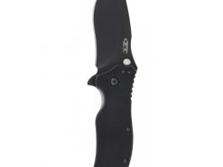 Zero Tolerance and Rick Hinderer teamed up to build the new Zero Tolerance 0562 with its exclusive Hinderer “slicer” grind. The ELMAX¨ powdered steel blade with flat-ground slicer grind provides both slicing efficiency and a tough point. ELMAX is a third-generation powdered steel with virtually no nonmetallic inclusions. This means it offers an extremely uniform distribution of carbides for high wear and corrosion resistance. Zero Tolerance sharpens it to a hair popping edge and the ELMAX ensures it holds that edge for a long time, even under hard use. The knife opens with a flipper and moves out of the handle on our smooth KVT ball-bearing opening system. A washer with caged ball bearings surrounds the pivot and makes opening the knife nearly frictionless; just pull back on the flipper and add a roll of the wrist and the 0562 is ready for action. The handle has a G-10 textured scale in front and a stonewashed titanium back. For secure lock up during use, ZT uses a frame lock with hardened steel lockbar inserts and lockbar stabilization so the lock won’t overextend. The unique pocketclip is reversible (left/right) and enables extra-deep carry in the pocket.